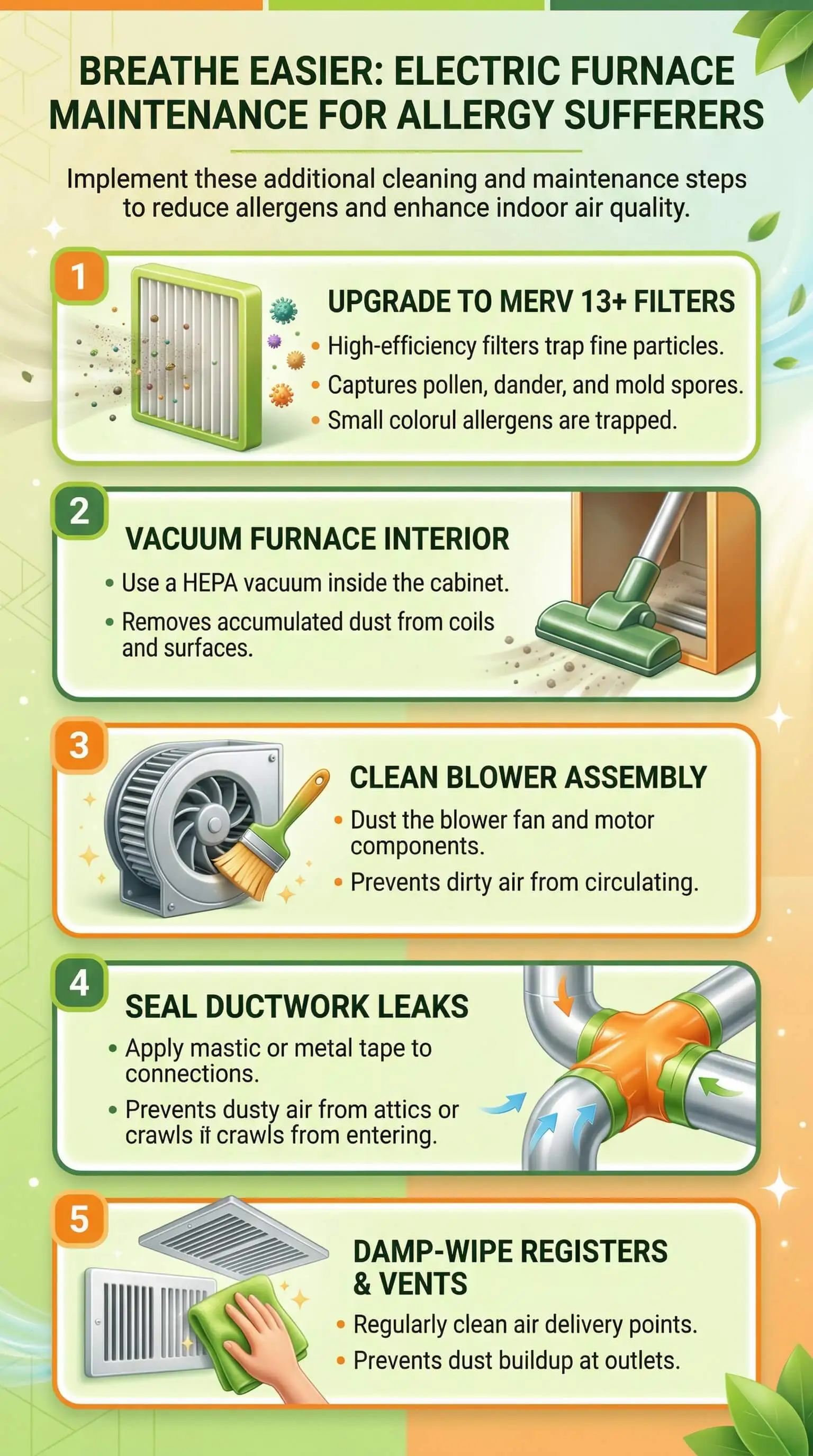 This page goes beyond the basics. You'll find the extra electric furnace maintenance steps allergy sufferers specifically need, the filter upgrades worth making, and the small details that make a measurable difference in your home's air quality year-round.